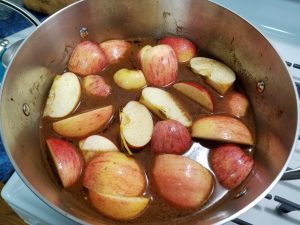 While the meat thawed, I cut the apples up and threw them in the pot with some water, sugar, cinnamon, and allspice. That’s got 3 hours of cook time ahead of it.