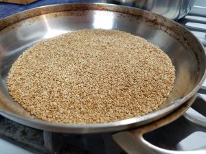 Then toasted the sesame seeds to make Tahini (sesame paste) for the hummus.